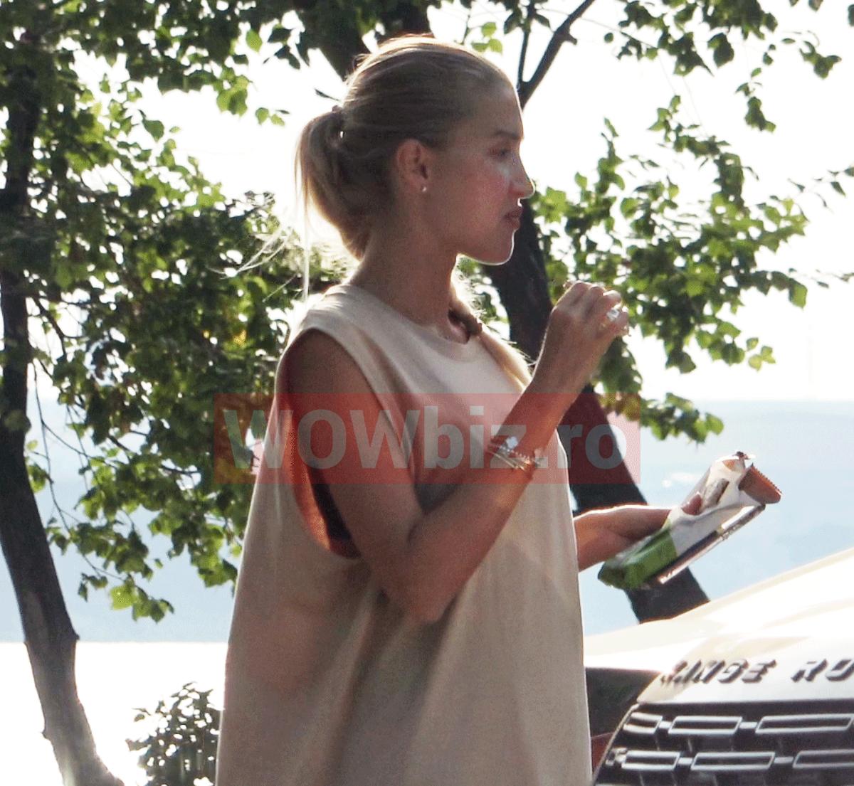 Aceștia erau într-o parcare de lângă un supermarket, probabil pregătindu-se de plecarea din vacanță. Cât timp copiii se jucau, soția lui Marica a băut două sucuri cu paiul și a devorat singură o țiplă cu napolitane cu ciocolată. E clar că e o fană a dulciurilor, însă nu ai zice asta dacă te uiți la corpul ei fără cusur.