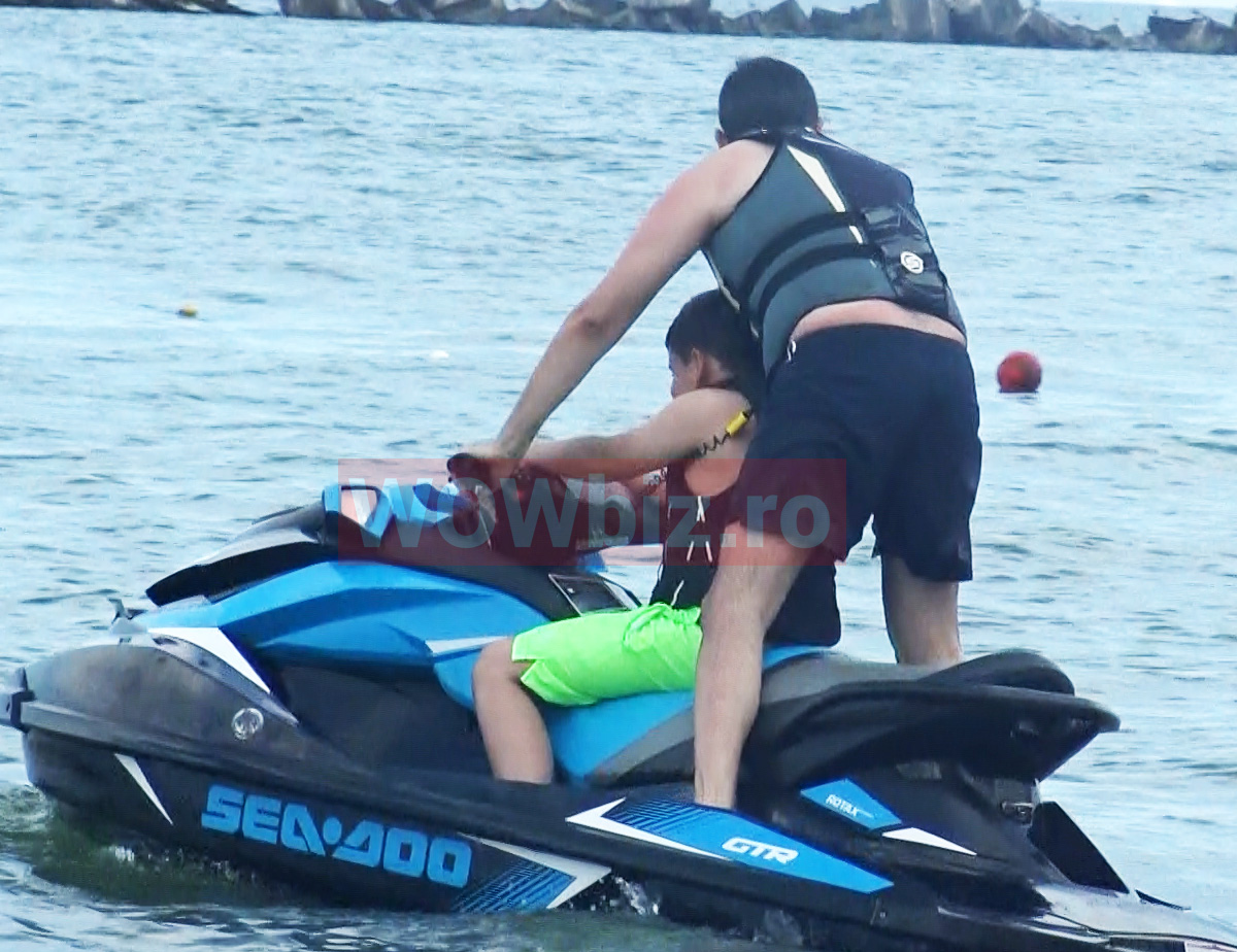 Dragoș Bîlteanu și-a dus copilul la plajă și i-a făcut toate poftele, inclusiv o plimbare cu skijetul pe apa mării. Când își permiți, dorințele copiilor sunt poruncă pentru părinți.