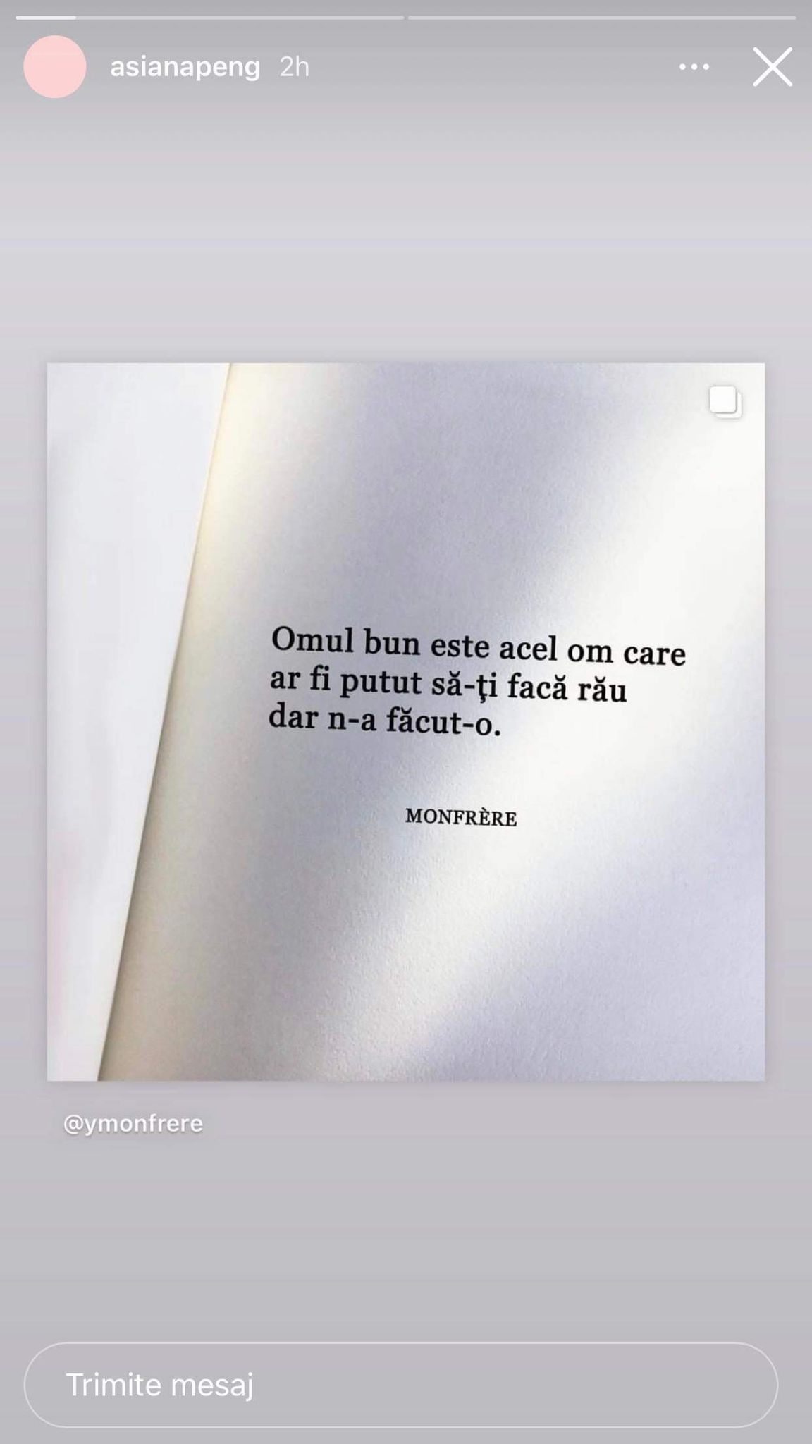 Totuși, fosta sportivă a ținut să spună printr-un mesaj: ”Fără așteptări, fără dezamăgiri”. Asta înseamnă că Asiana trece prin momente mai tensionate, însă momentan nu a spus despre ce este vorba. Cei care o urmăresc îndeaproape pe rețelele sociale așteaptă ca tânăra să le ofere un răspuns.