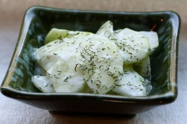 Spala castravetii, taie-i felii, apoi taie marunt ceapa, intr-un castron.