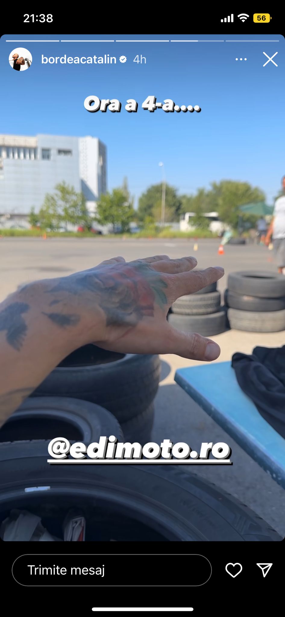După sesiunea de sport, Cătălin și prietenul lui s-au relaxat lângă mașină, au comunicat preț de câteva minute, apoi comediantul s-a îndreptat către următoarea destinație, respectiv școala de motocicleta, plănuind să fructifice această pasiune, potrivit Spynews.ro.