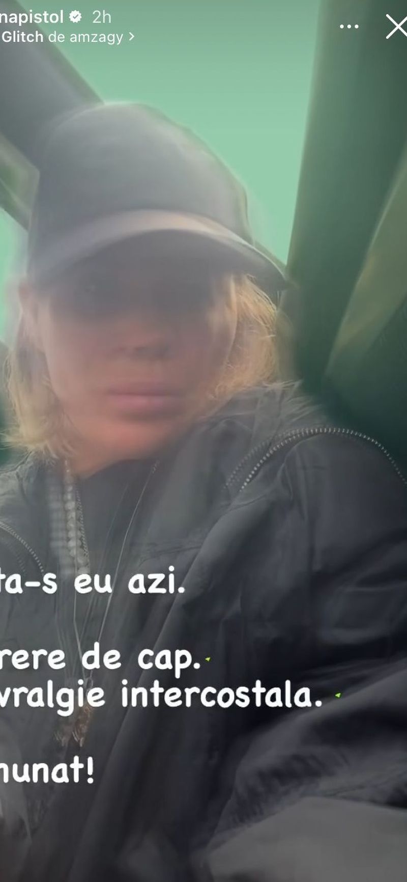 „Asta-s eu azi. Durere de cap. Nevralgie intercostală. Minunat!”, a scris Gina Pistol în mediul online.
