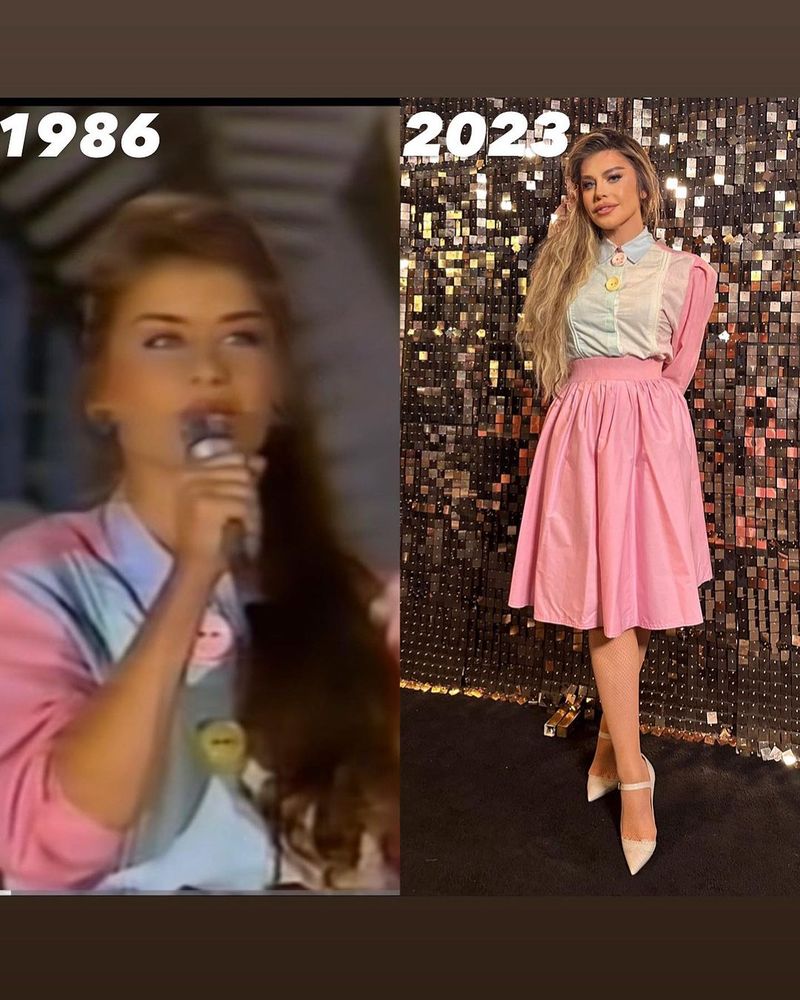 În imaginile respective, Loredana Groza se afla pe scena din Mamaia, în urmă cu 37 de ani, unde avea doar 16 ani și purta o rochie roz care se pare că i-a fost tare dragă. După aproape 4 decenii, la 53 de ani, artista a luat aceeași rochie și a îmbrăcat-o, demonstrând tuturor că a rămas la fel de frumoasă și suplă ca în adolescență. Tavi Clonda a rămas și el impresionat de colajul pe care l-a creat, așa că a lăsat în secțiunea de comentarii mai multe emoticoane prin care a sugerat că o aplaudă pe artistă. La rândul ei, Loredana Groza a reacționat și ea, lăsându-i o inimioară.
