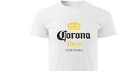 „Bună-i berea, nu-i ca vinul, nici răceala ca vaccinul!”, este îndemnul ce însoțește descrierea tricoului. Un alt tricou are un imprimeu asemănător, fiind scris Corona Virus Survivor, prețul acestuia fiind de 59 de lei.