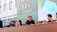 „Liderul suprem Kim Jong-un taie panglica cu ocazia inaugurării uzinei de îngrăşăminte fosfatice din Sunchon”, scrie agenţia nord-coreean de ştiri.