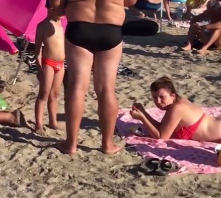 O femeie a fost filmata in timp ce manca seminte pe plaja. Nici dupa ce i s-a atras atentia de catre tanara care o filma, femeia nu s-a oprit. Mai mult decat atat, parea deranjata de faptul ca i s-a facut observatie.