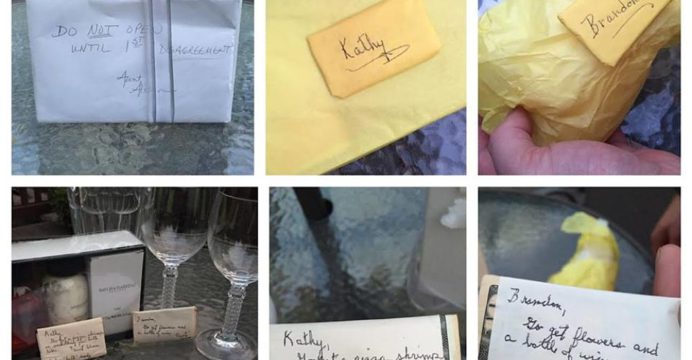 Kathy si Brandon Gunn din Michigan au primit un cadou de nunta misterios in 2007 de la matusa miresei. Pe plic scria: „nu deschideti decat dupa prima cearta”. La un moment dat, dupa noua ani, cuplul si-a amintit de cadou si l-a deschis. Inauntru se aflau doua bilete. In biletul adresat ei era scris sa cumpere ceva de mancare pe gustul amandurora, iar in biletul lui scria sa-i cumpere sotiei sale flori si o sticla cu vin.