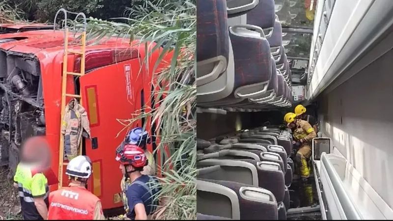 Tragedie în Spania! Un autocar care transporta 60 de pasageri s-a răsturnat pe autostradă în drum spre aeroportul „El Prat” din Barcelona. În urma accidentului, zece persoane au fost spitalizate, două dintre ele în stare gravă, iar alte șapte au suferit răni ușoare. Accidentul a avut loc într-un moment de trafic intens pe autostrada C-32, una dintre rutele principale care leagă Costa Brava de Barcelona.