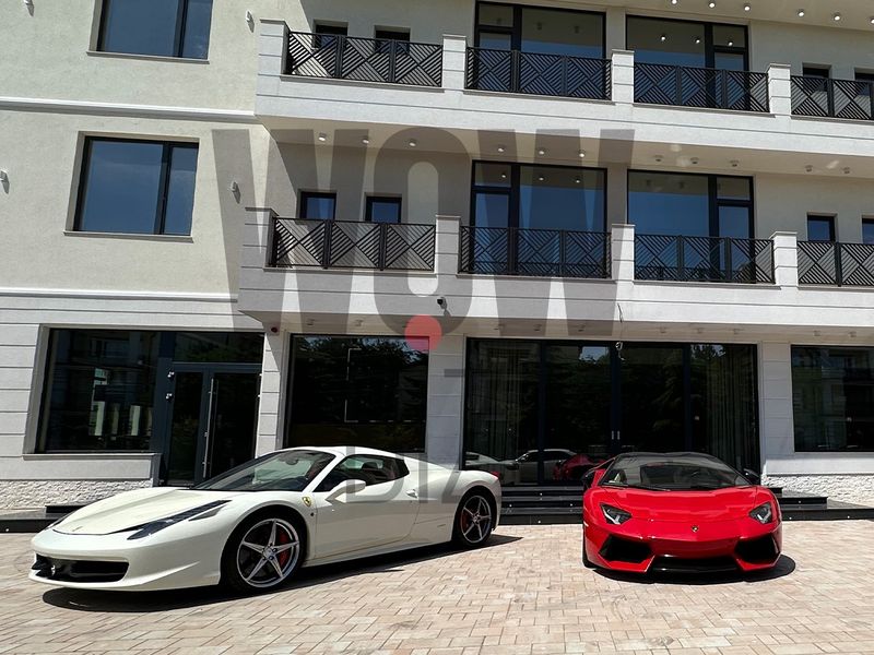 Un Lamborghini Avendator și un Ferrari Spider decapotabil completează perfect peisajul din fața hotelului. Cert este că cele două bijuterii pe patru roți ajung să se vândă la prețuri care i-ar putea lăsa pe iubitorii de mașini cu gura căscată. Mașinile de lux depășesc 100.000 de euro, din informațiile jurnaliștilor WOWbiz.ro.