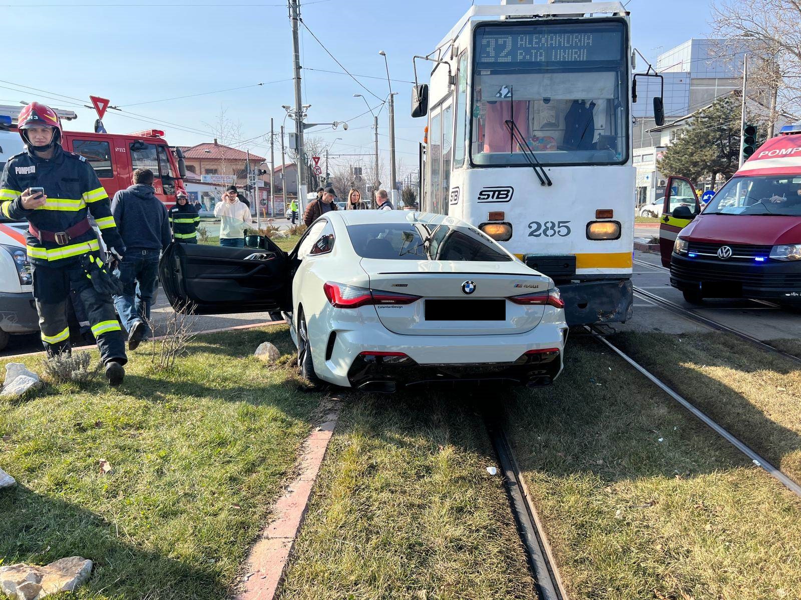 Impactul a avut loc pe Șoseaua Alexandriei, în zona rondului Antiaeriană. Accidentul s-a produs între un autoturism și un tramvai. Cei doi șoferi au fost testați cu aparatul etilotest, rezultatul fiind 0. În prezent, polițiștii efectuează cercetări pentru a stabili circumstanțele în care s-a produs accidentul din București.