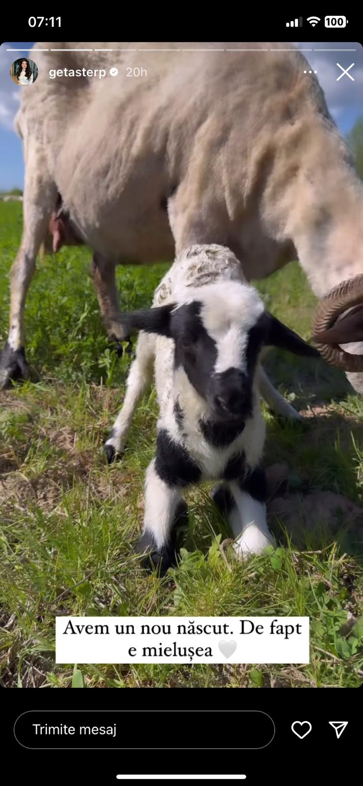 Geta Sterp împărtășește adesea admiratorilor săi din mediul online noutăți și impresii de la stână, acolo unde își petrece cea mai mare parte din timp în această perioadă, doar că recent a avut parte de o nouă bucurie, pentru că s-a mai născut încă un mielușel.