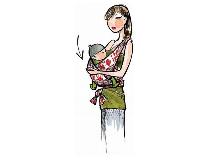 In loc de caruciorul clasic pentru nou-nascuti, actrita foloseste o esarfa “wrap” port-bebe.
