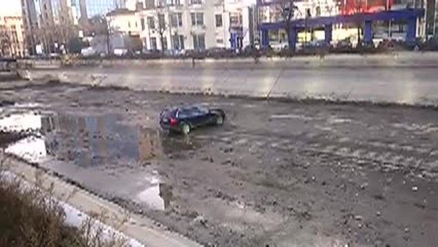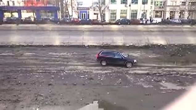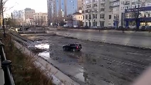 Un sofer aflat la volanul unei masini de teren ce pare a fi un Volvo, incearca sa "pacaleasca" traficul infernal din Capitala intr-un mod extrem de dubios. Omul a coborat cu masina in albia Dambovitei care este secata pe acel tronson si a incercat sa urce iar pe sosea, dar, surpriza, bolidul cu tractiune fata nu l-a ajutat prea mult sa urce panta extrem de abrupta si alunecoasa, asa ca se vede nevoit sa intoarca si sa incerce sa iasa exact pe unde a coborat.