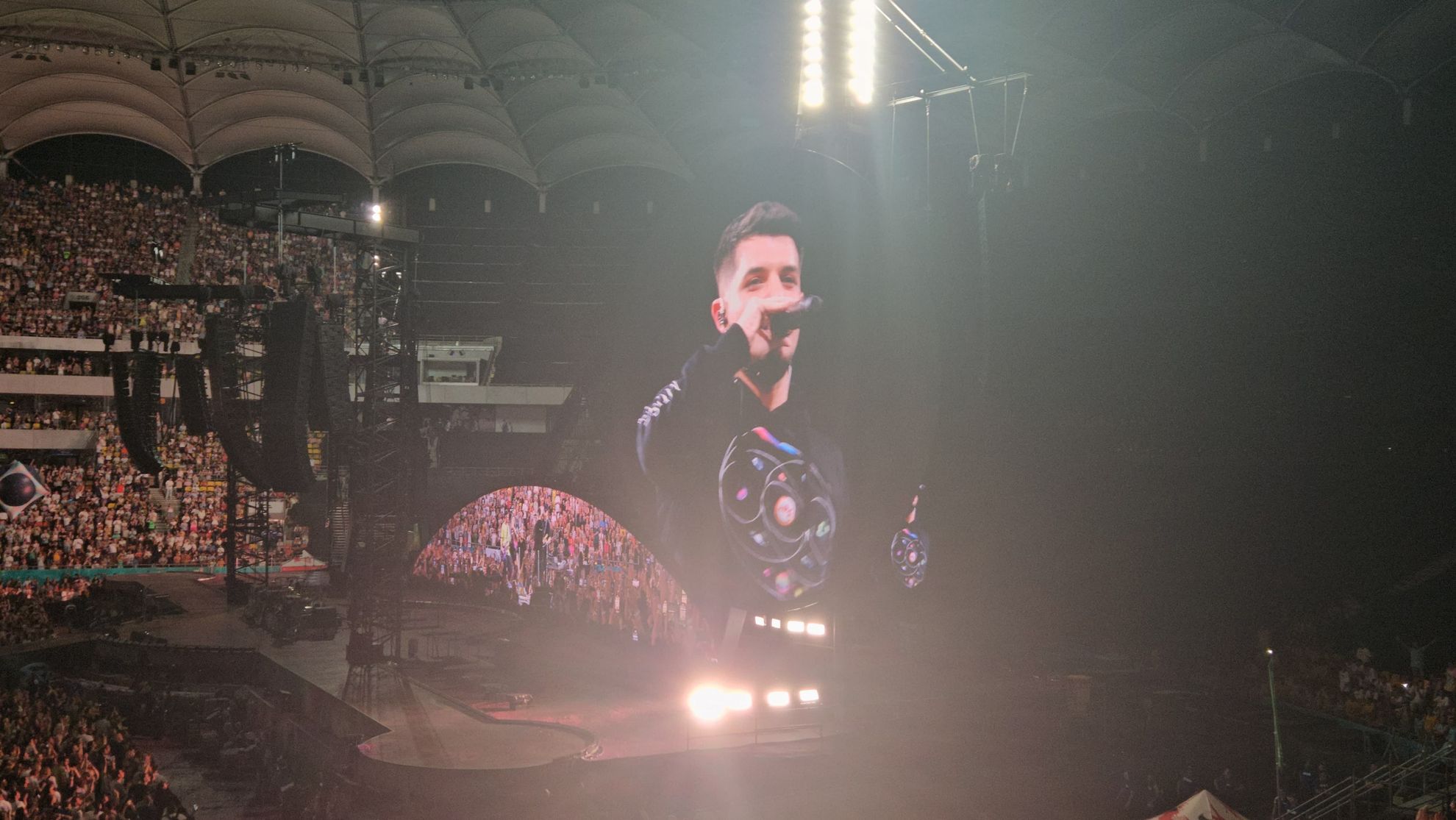 După tot scandalul iscat pe internet, Babasha a vrut să lase în urmă clipele de la concertul de ieri. Și-a luat inima în dinți, iar în această seară a urcat din nou pe scenă, alături de întreaga trupă Coldplay, deși la începutul concertului nimeni nu mai credea că își va face apariția.