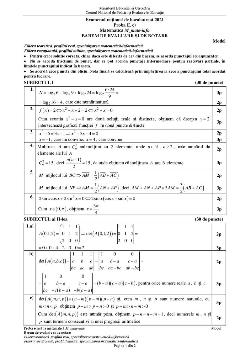 Modele de subiecte la matematică pentru BAC 2021 – Profil mate-info