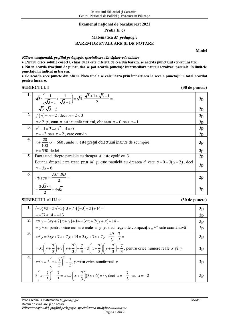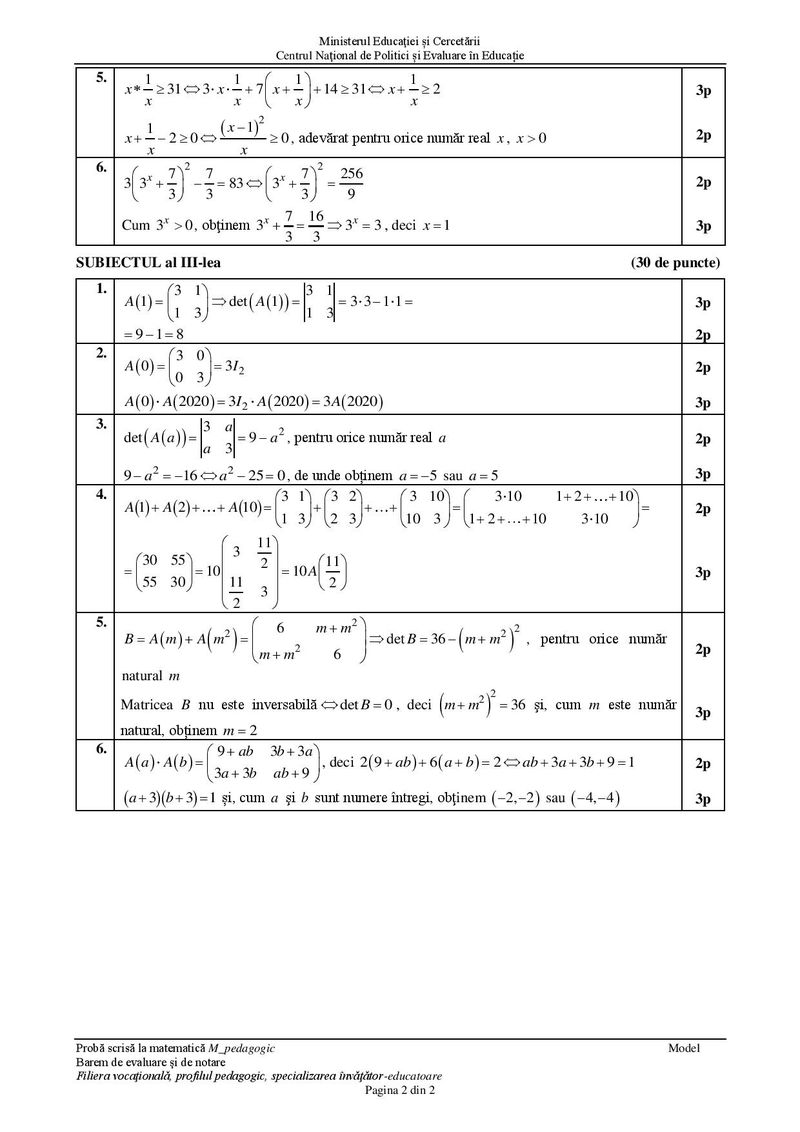 Modele de subiecte la matematică pentru BAC 2021 – Profil pedagogic
