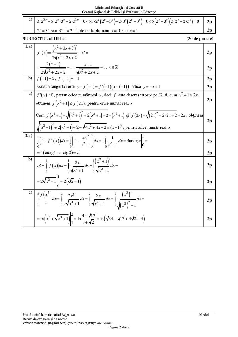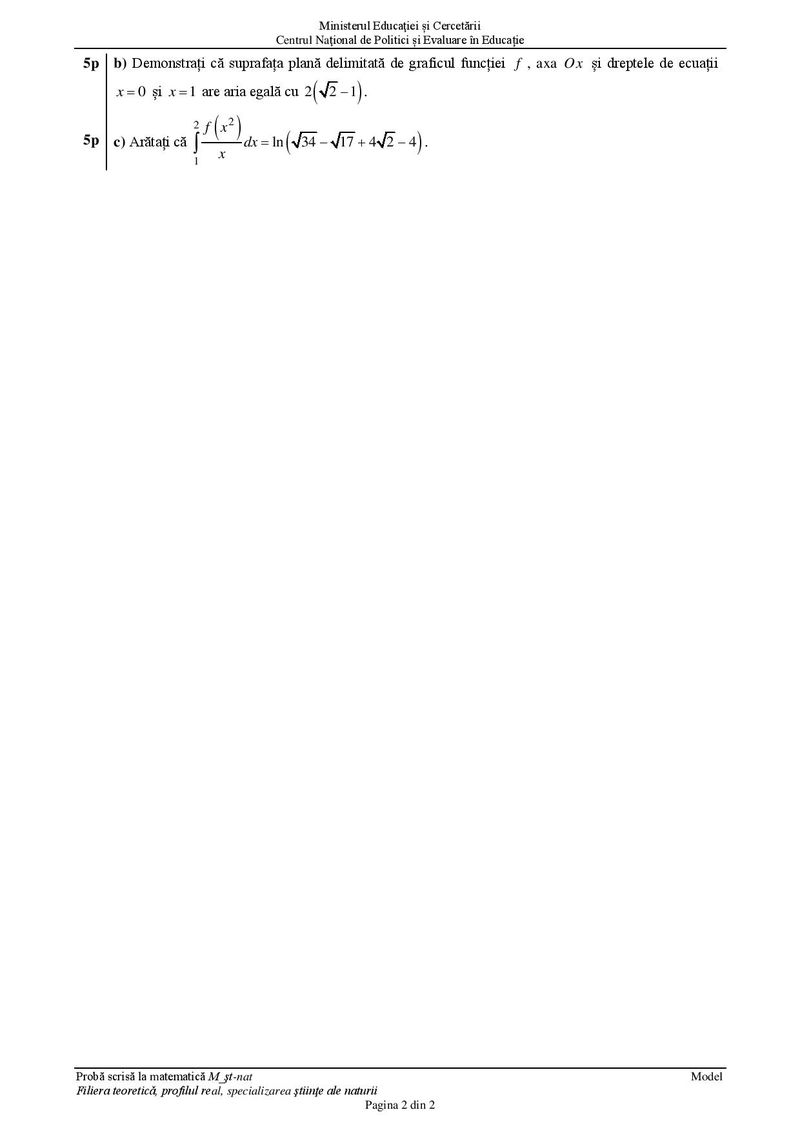 Test 11 Matematică – Profil Științe ale Naturii