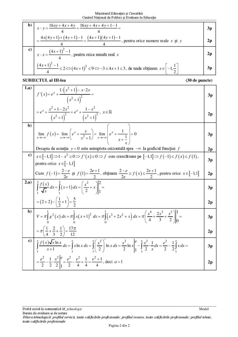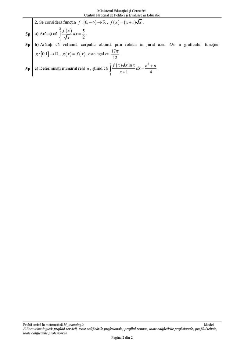 Test 11 Matematică – Profil Tehnologic
