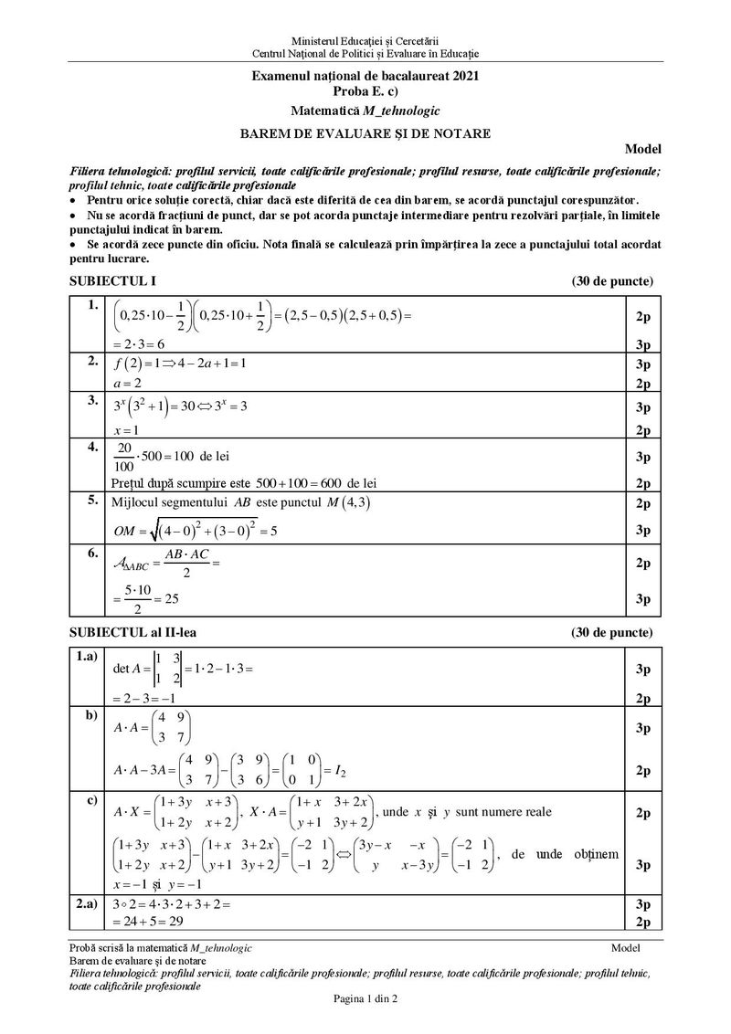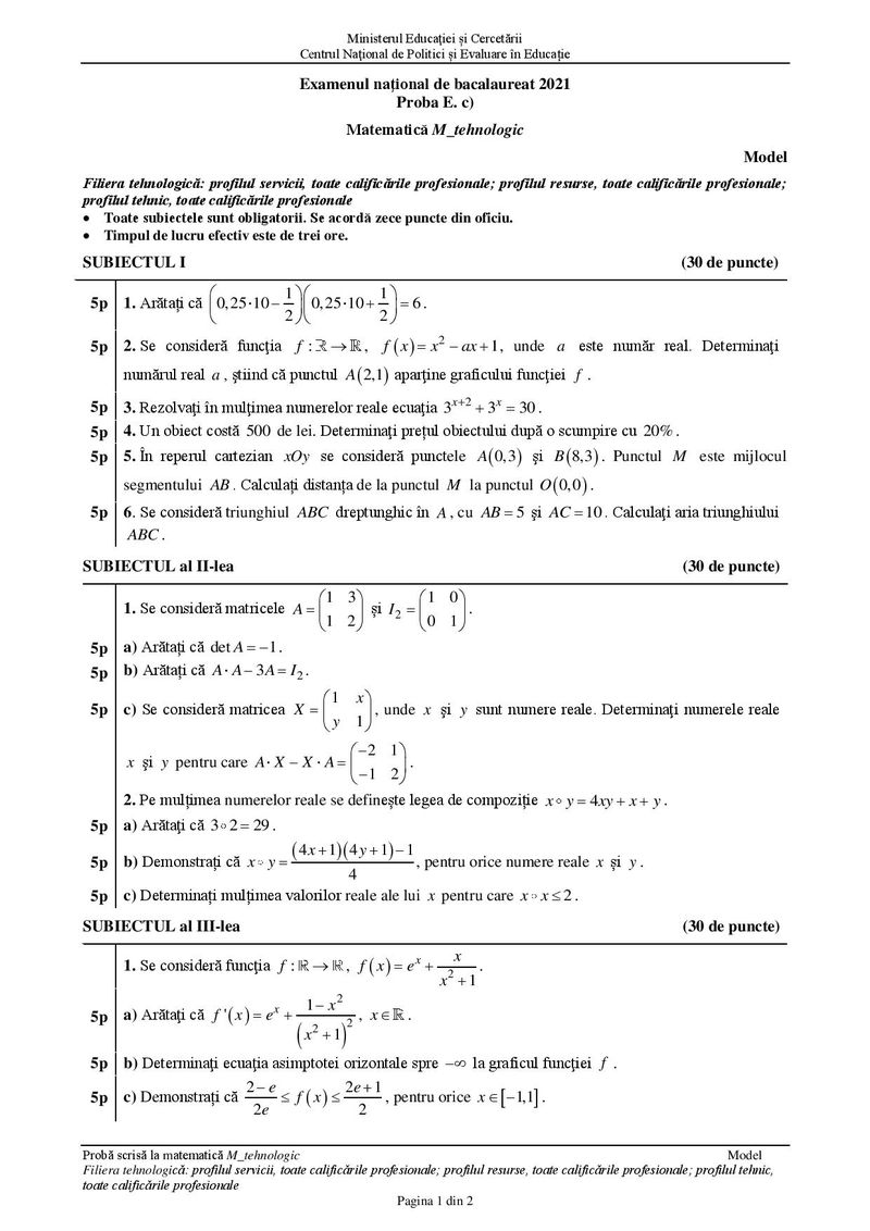 Modele de subiecte la matematică pentru BAC 2021 – Profil tehnologic