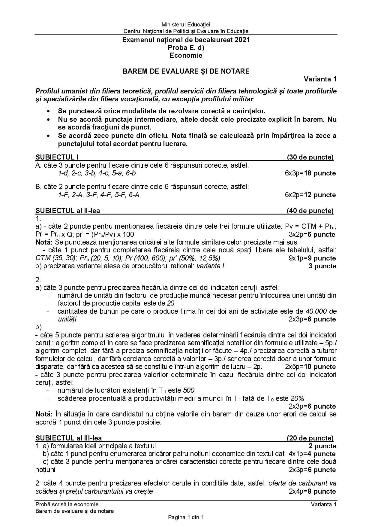 - 29 iunie 2021: Proba obligatorie a profilului, proba E.c) proba scrisă