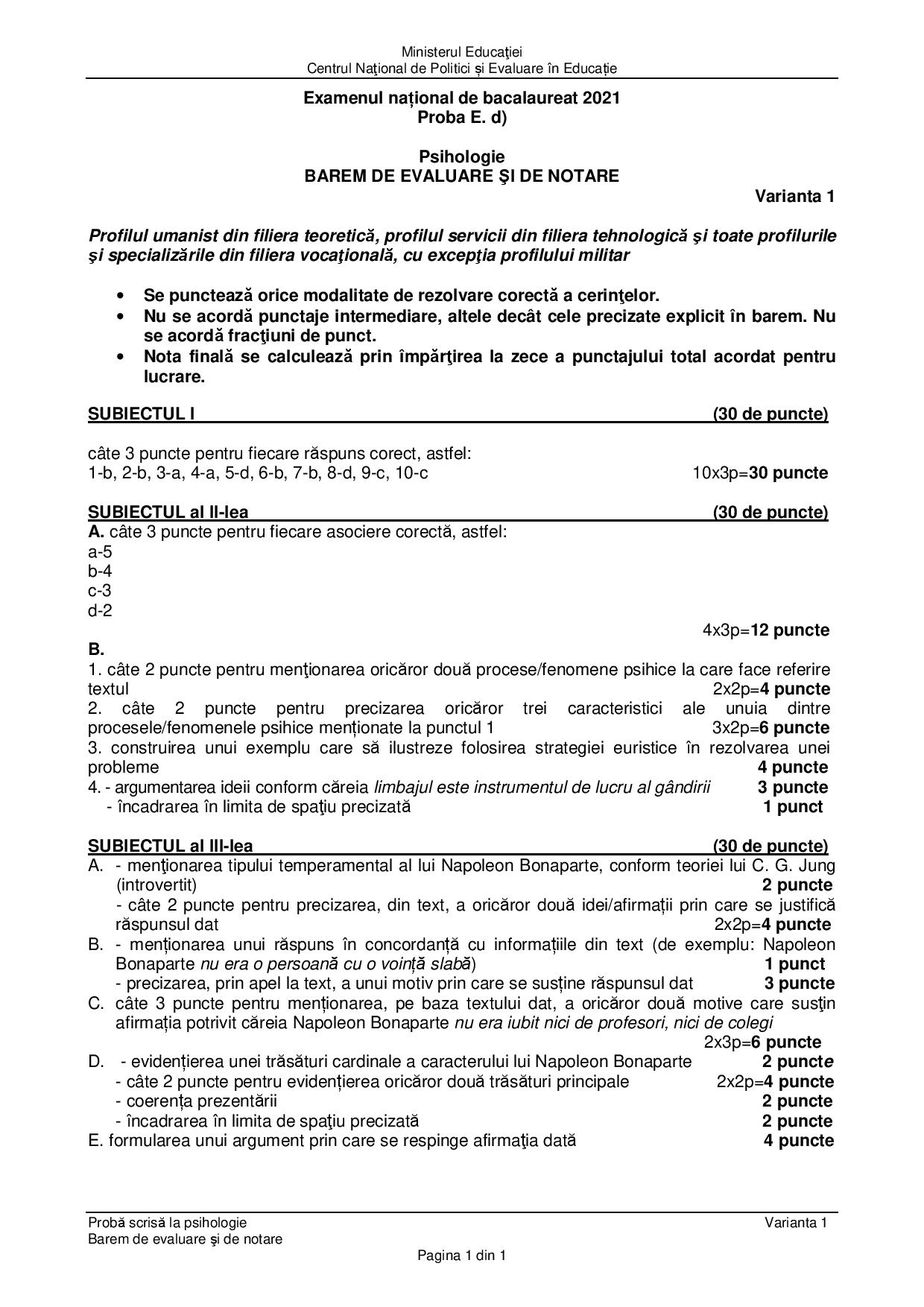 Subiecte BAC 2021. Proba la alegere: Psihologie
