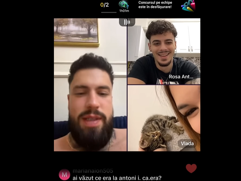 Vlada: 7 săptămâni”, a dezvăluit Vlada pe live-ul de pe Tik Tok al lui Laurențiu.