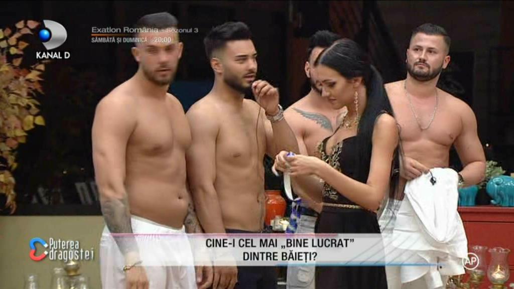 Imagini senzaționale la Puterea Dragostei! Băieții s-au dezbrăcat imediat în gală, în fața Andreei Mantea, pentru a-și arăta mușchii și, culmea!, pentru a-și măsura bicepșii! Cea care a luat centimetrul și a măsurat concurenții din Casa Puterea Dragostei a fost chiar Bianca.