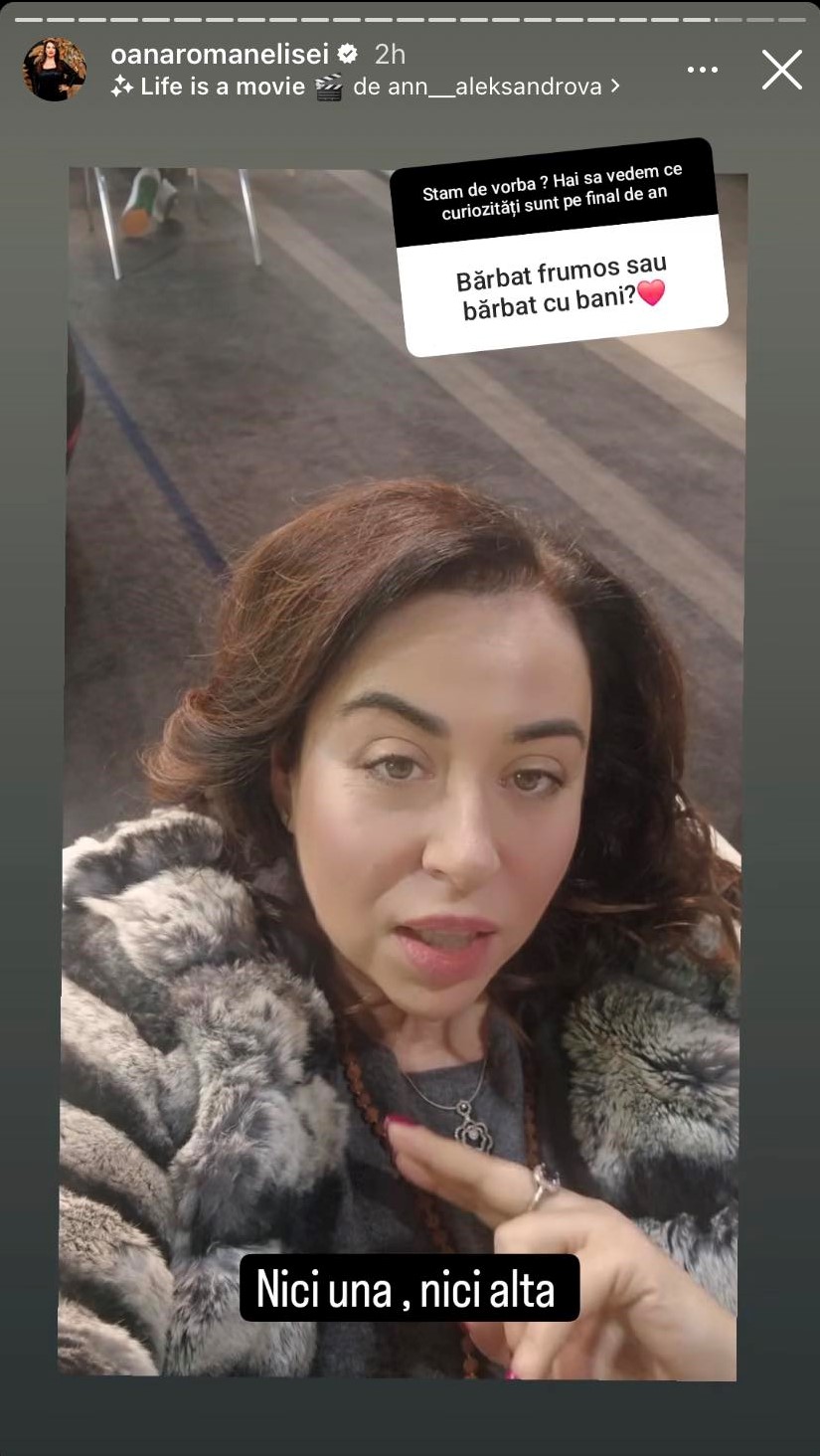 „Bărbat frumos sau bărbat cu bani?”, a fost întrebarea pe care a primit-o Oana Roman de la un internaut.