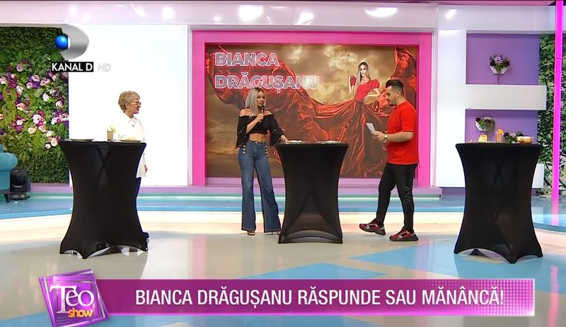 În continuare, a mai fost rugată să spună numele unui bărbat celebru, cu care regretă că a avut o relație. Imediat, Bianca Drăgușanu a făcut referire la cel cu care s-a și căsătorit la un moment dat, însă nu a vrut să îi dea numele. Cel mai probabil este vorba de omul de afaceri, de care s-a despărțit cu mare scandal.