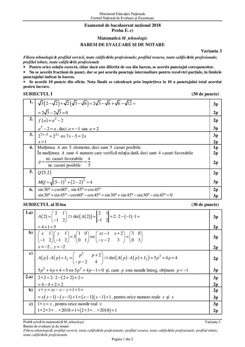 Barem Matematică Tehnologic Bac 2018. Mari emoţii au fost astăzi şi pentru elevii care au absolvit clasa a XII-a la profilul tehnologic. Iată baremul de corectare pentru ei: