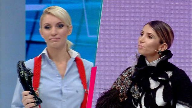 “Cred ca esti ironica, Silvia! Vezi ca vine si nu e marimea ta!”, spune Alina in timp ce se pregateste sa lanseze pantoful “amenintator”.