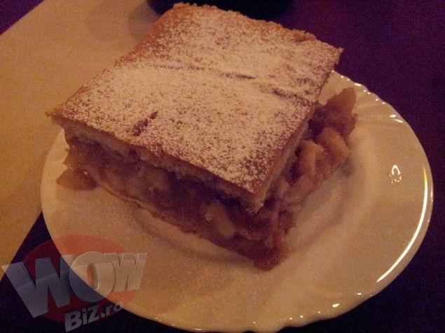 gustative.In meniul din taverna lui Calinescu gasim patru feluri de papanasi: cu dulceata, miere si nuca, ciocolata si frisca sau inghetata si ciocolata. Portia cantareste 650 de grame si costa, dupa cum v-am spus, 15 lei. Placinta cu mere costa 10 lei