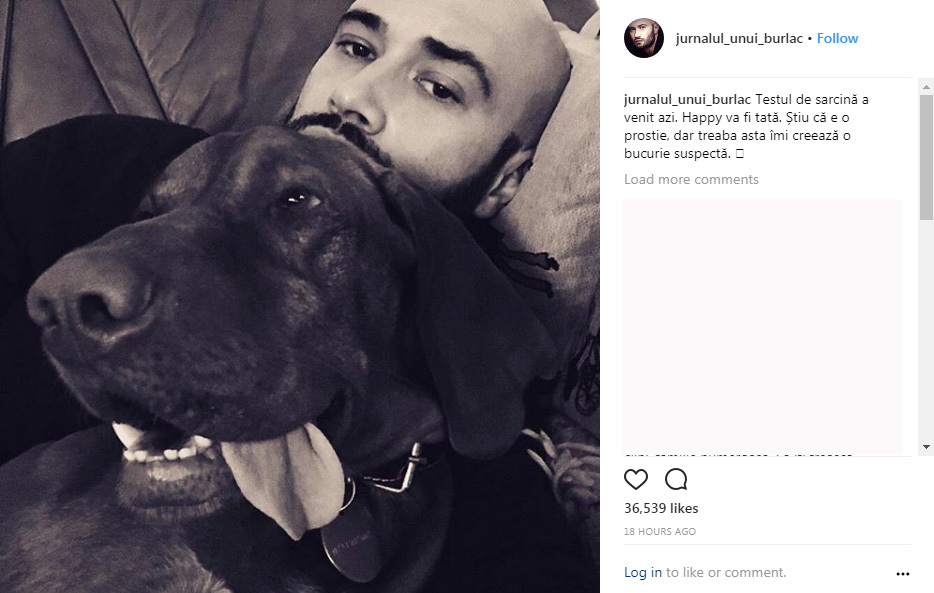 "Testul de sarcina a venit azi. Happy va fi tata. Stiu ca e o prostie, dar treaba asta imi creeaza o bucurie suspecta", a scris Mihai Bendeac pe Instagram.