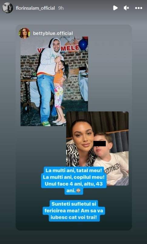 „ La mulți ani, tatăl meu! La mulți ani, copilul meu! Unul face 4 ani, altul, 43 de ani. Sunteți sufletul și fericirea mea! Am să vă iubesc cât voi trăi! ”, a transmis Betty Salam, pe Instagram.