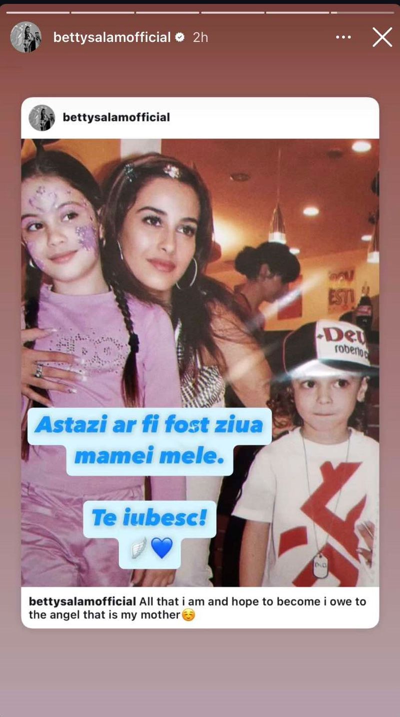 Astăzi, în ziua care trebuia să fie specială pentru ei, Betty a publicat o fotografie în care apărea alături de mama și fratele ei și a scris un mesaj emoționant, dedicat femeii care i-a dat viață.