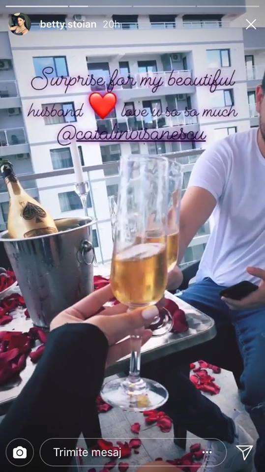 Betty Stoian si Catalin Visanescu si-au sarbatorit in acest weekend noua lor casnicie, dar si ziua de nastere a viitorului tatic. Betty si Catalin au petrecut clipe romantice in doi, intr-o locatie de lux, si s-au rasfatat cu sampanie si petale de trandafir.