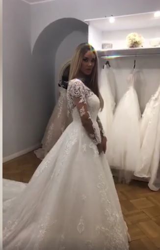 Vedeta a imbracat o rochie de mireasa superba, cu trena lunga, intr-un atelier de rochii, iar reactii ei nu au intarziat sa apara.