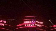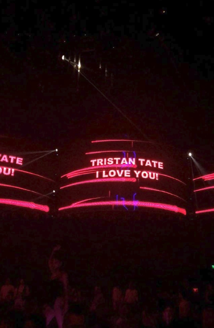 "Tristan Tate, I love you" (n.r. Tristan Tate, te iubesc) este mesajul care a aparut pe plasmele din club si toti au putut vedea sentimentele impartasite ale Biancai.