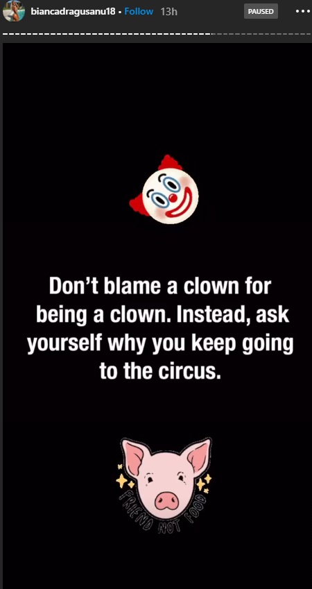 ” Nu dați vina pe un clovn pentru că este un clovn. În schimb, continuați circul”, a fost mesajul postat de Bianca Drăgușanu, pe pagina ei de Instagram.