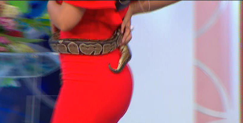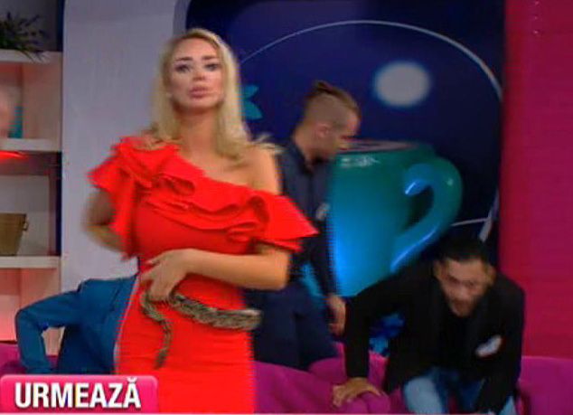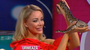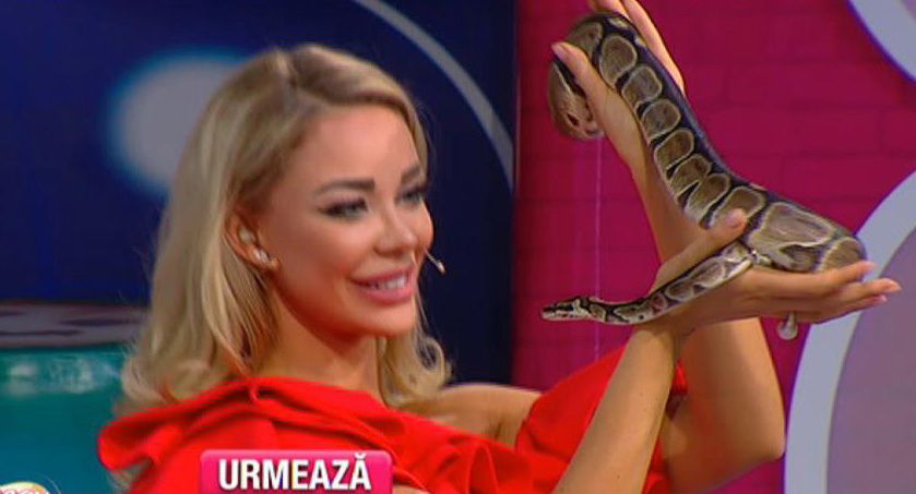 Bianca Dragusanu n-are nicio frica. Astazi, in direct, s-a jucat cu un sarpe! Noua prezentatoare a emisiunii "Te vreau langa mine" a alintat reptila, a mangaiat-o, a leganat-o in brate.