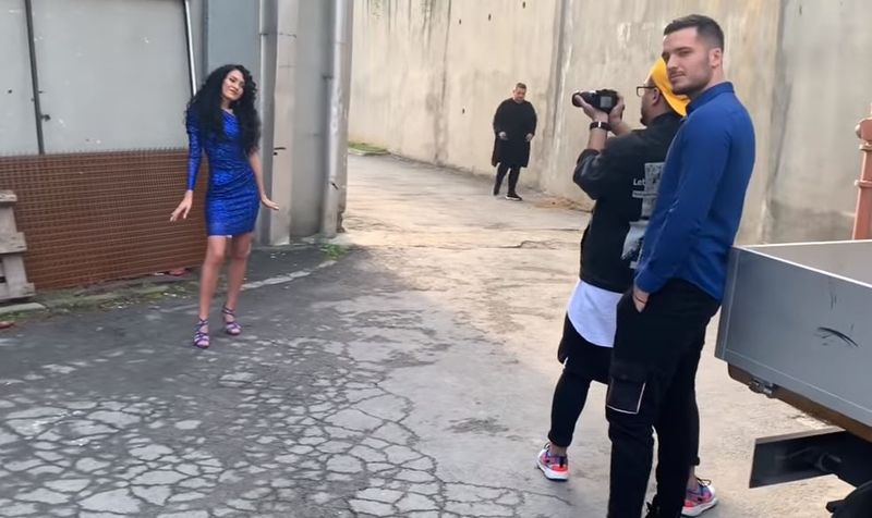 Astfel, întâi a pozat Bianca de la ”Puterea Dragostei” într-o rochie albastră, scurtă și mulată, parcă făcută special să se asorteze cu ochii ei și să îi pună în evidență formele de fotomodel, iar Livian, în