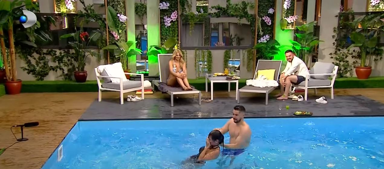 În cele din urmă, Bianca a răspuns provocării lui Robert, așa că a sărit în apă, demonstrându-i că se pricepe la asta. A urmat, însă, și o ”bălăceală” între cei doi, totul în timp ce Mihaela, partenera lui Robert, privea de pe margine.