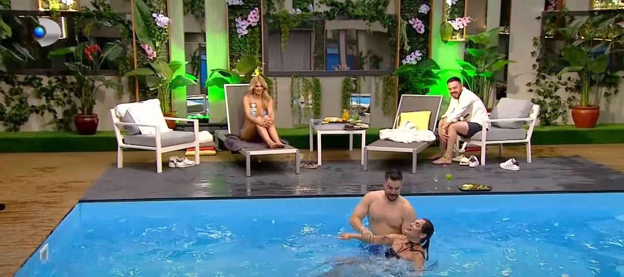Totuși, după ce perechile au intrat în apă, s-au relaxat ulterior pe șezlongurile de pe marginea piscinei, însă la un moment dat, Robert a întrebat cine știe să sară cel mai bine în cap, pentru a face un concurs, moment în care Bianca a răspuns îndrăzneață propunerii colegului său.