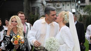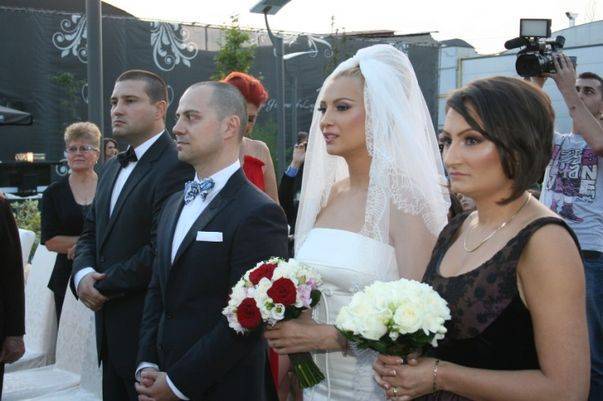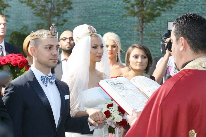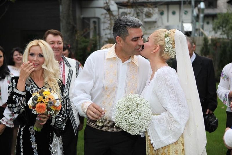 Mai mult, cei doi au inlocuit vestimentatia clasica, rochia de mireasa si costumul de ginere, cu vesminte pupulare romanesti. Nasii cuplului au fost Mihaela si Silviu Prigoana, care le-au stat alaturi in timpul cununiei religioase petrecute in aer liber si la petrecerea ce a urmat.