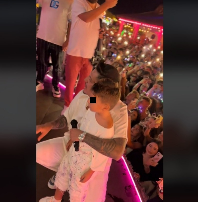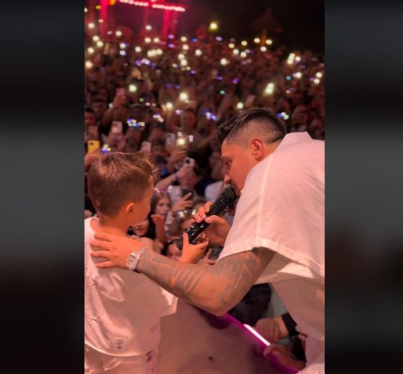 Manelistul a apărut pe scenă, spunându-le fanilor că vrea să le prezinte ”cel mai mare hit” al său, respectiv pe fiul cel mare, Franco, ulterior vorbind și despre al doilea băiat al lui, Tiago, asta după ce mult timp a susținut că cei doi copii sunt, de fapt, finii lui.