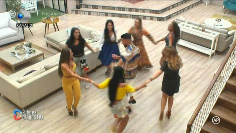 Cei doi au început să danseze în Casa Fetelor! Mai apoi, au început să încingă o horă cu toate fetele! Băieții, pe de altă parte, au fost mai liniștiți când l-au văzut pe Bogdan intrând pe ușă, însă au venit toți să-l salute!