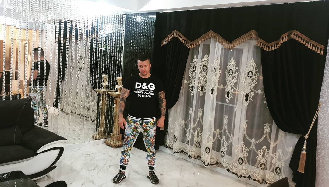 Dar, lui Gătălin Geolgău, devenit celebru după ce 5 polițiști au stat drepți în fața lui, îi place să se laude cu bogăția lui. Nu doar pe Tik Tok, ci și pe Instagram are numeroase poze care demonstrează acest lucru. În urmă cu ceva timp, a făcut și un filmuleț în care oferă iubitei sale un buchet de flori chiar în apartamentul lui de lux, unde are draperii din cristale.