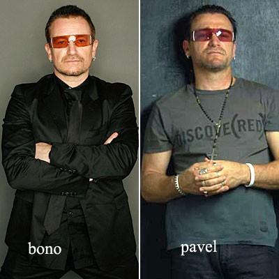 Pavel Sfera, care a aparut anul acesta si la show-ul „Romanii au talent” a dat un interviu publicatiei americane Orange County Register in care a marturisit ca asemanarea uluitoare cu Bono, solistul trupei U2, l-a transformat intr-un om bogat. Pavel este sosia lui Bono de circa 12 ani si a ajuns sa nu mai faca fata solicitarilor. El participa la evenimente in calitate de „Bono” pentru sume cuprinse intre 500 $ si 10.000$, in functie de durata si locul evenimentului. De asemenea, el face parte din 3 trupe de tip „U2 Tribute” din California, Nevada si Italia. Cel mai mare show l-a sustinut in fata a 20.000 oameni si a avut loc in Spania.