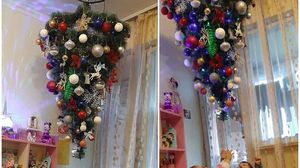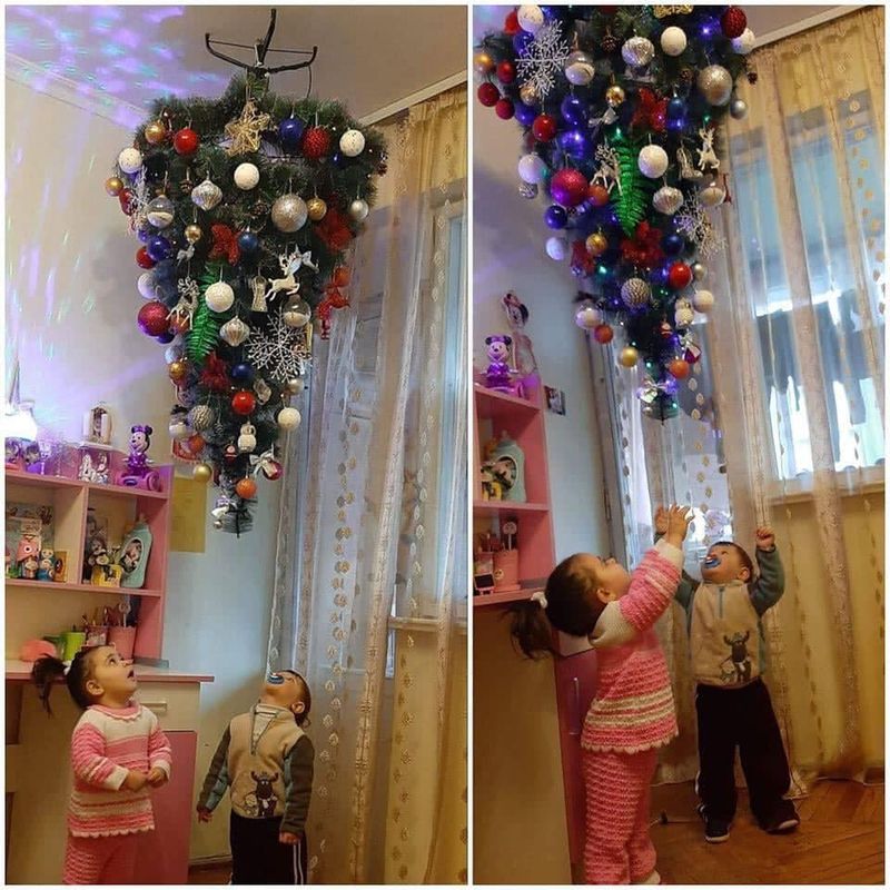 Părinții micuților au da dovată de multă originalitate atunci când au decis să pună bradul invers, iat fotografiile au stârnit sute de reacții.