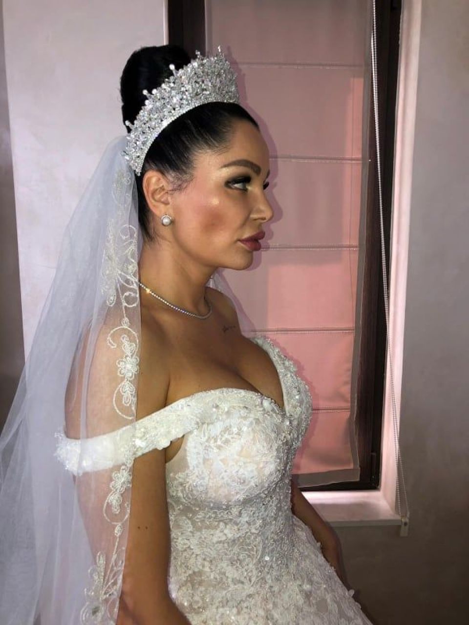 „Foarte frumoasă. Este superbă. Ne-au trebuit 30 de minute să o îmbrăcăm. Acuma rămâne să o dezbrace soțul. Este emoționată. Are o rochie superbă, cu o trenă de 20-30 de metri. Este ca o prințesă. Și coroana este foarte frumoasă”, a mai declarat Lizeta Haralambie.